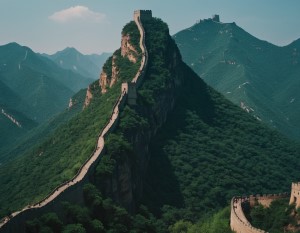 提供山峰图片,提示词为“中国的山,长城,烽火台”(样式选“自然风景”),则生成的图片中主峰和提示图片中山的轮廓极其相似。